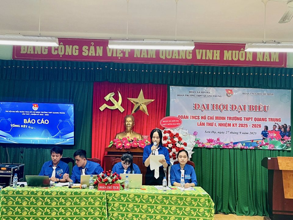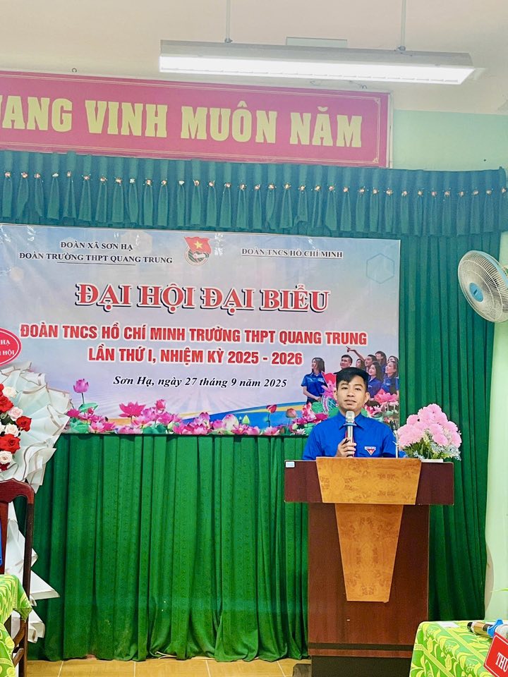 Ngày 27/9/2025, Đoàn trường THPT Quang Trung đã tổ chức thành công Đại hội Đại biểu Đoàn TNCS Hồ Chí Minh nhiệm kỳ 2025-2026.