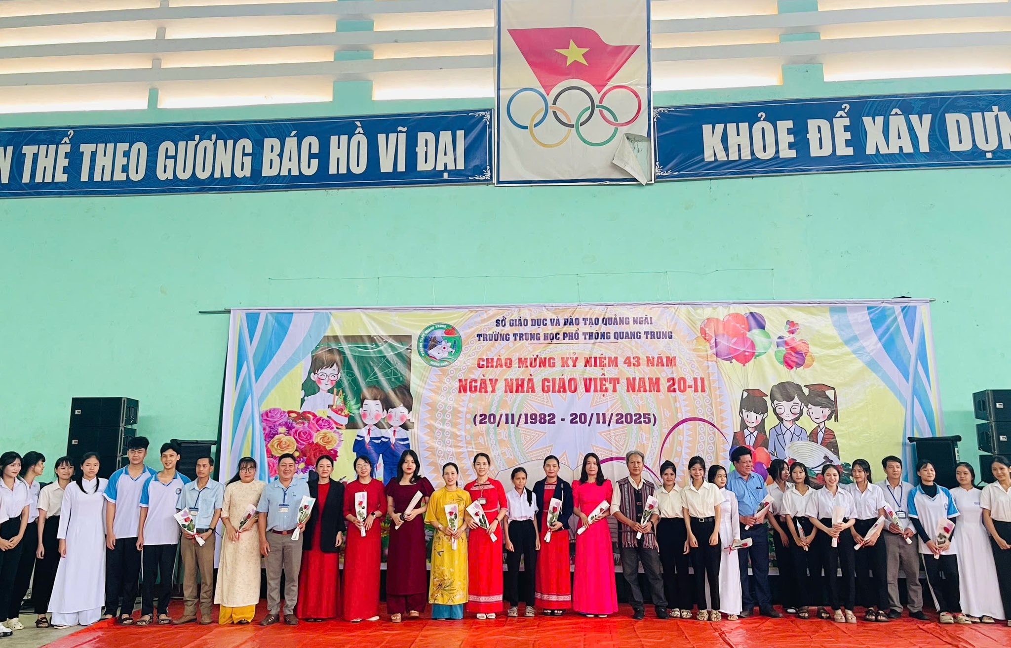 Ngày 17/11/2025, trường THPT Quang Trung tổ chức Lễ Chào mừng kỷ niệm 43 năm Ngày Nhà giáo Việt Nam (20/11/1982 – 20/11/2025) – đây không chỉ là dịp để nhìn lại những thành tựu rực rỡ mà còn là khoảnh khắc để tôn vinh sự cống hiến thầm lặng của những người mang sứ mệnh “trồng người”.
